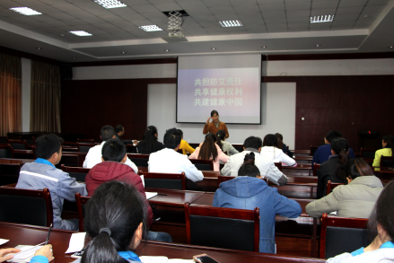 下午,县总工会联系了龙陵县海螺水泥有限责任公司等企业,协调组织了80余名职工参加主题为“共担防艾责任 共享健康权利 共建健康中国”的防艾知识培训会。会议向大家介绍了艾滋病的现状、艾滋病的症状、艾滋病的传播途径以及艾滋病的防控策略,细致的讲解让大家了解了艾滋病的成因和预防,消除了对艾滋病的疑虑和恐惧。培训结束后,在现场对职工进行艾滋病抽样检测。