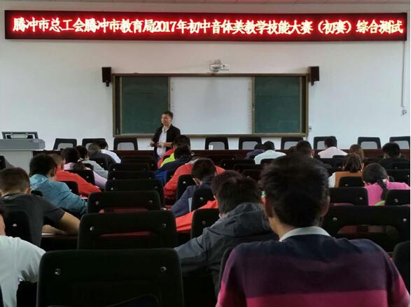 为进一步加强教职工队伍建设,提高广大教师教学积极性、主动性、创造性,推动教学改革创新,促进教育事业发展。9月20日,腾冲市总工会、市教育局联合举办腾冲市初中教师教学技能大赛,来自市30所初级中学59名音乐、体育与健康、美术教师参加了比赛。